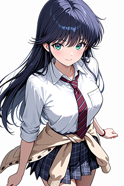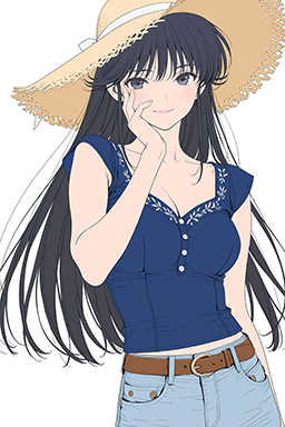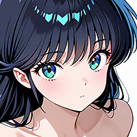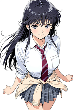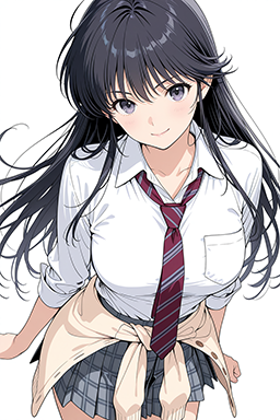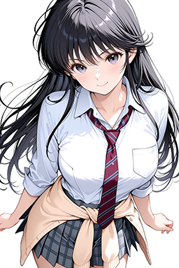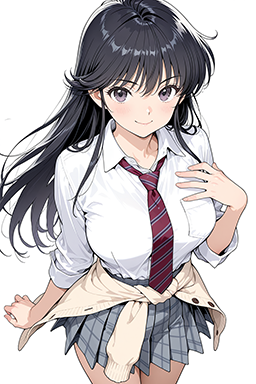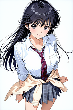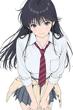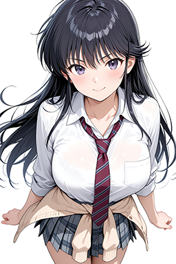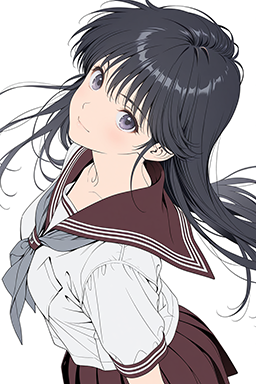 ベースモデルの推奨設定で「(ayukawa madoka:0.2) , (black hair:2) , straight hair , masterpiece face , (adult face:1.4)」というプロンプトで作成された画像は次のとおり。