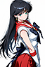 (sailor-moon costume:0.8) , (yellow circlet:0.6) , red five-pointed star earrings , red choker with yellow five-pointed star , red collar with dark-navy ribbon tied at the chest , red gem at the chest , white arm-covers that have red sections at the elbows , red skirt , big short red ribbon tied at the hips